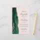 The left-hand edge of this elegant modern wedding invitation features an emerald green watercolor agate border trimmed with faux rose gold glitter. The customizable text combines charcoal gray handwriting, copperplate and italic fonts on a blush pink background. Add additional details on the back, along with a QR code to help your guests visit your wedding website.