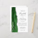The left-hand edge of this elegant modern wedding invitation features a hunter green watercolor agate border trimmed with faux silver glitter. The customizable text combines charcoal gray handwriting, copperplate and italic fonts on a white background. Add additional details on the back, along with a QR code to help your guests visit your wedding website.