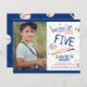 Celebra el cumpleaños de tu pequeña novata con esta invitación de cumpleaños, que incluye una foto personalizada de tu hijo. Esta vibrante tarjeta de invitación económica cuenta con adorables decoraciones de béisbol, tonos azules y rojos, confetti que anima el ambiente y un megáfono que añade emoción. Esta atractiva y atractiva tarjeta de invitación de cumpleaños es perfecta para los padres que quieren una celebración asequible pero memorable por el hito de su hijo. Prepárate para golpear y crear recuerdos duraderos con esta invitación de cumpleaños.
