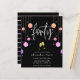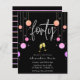 Celebra tu 40 cumpleaños en estilo y asequibilidad con esta moderna invitación de 40 años de color brillante. El diseño presenta las palabras "cuarenta" en un moderno guión escrito a mano con un borde de coloridas gotas de purpurina brillante y dos gafas de champán de oro tostado. En la parte inferior de la tarjeta se muestran los detalles de la celebración de cumpleaños que se pueden personalizar totalmente según tus necesidades. En el lado inverso se observa un patrón purpurina rayado en color rosa.