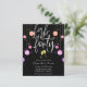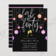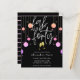 Celebra tu 40 cumpleaños en estilo y asequibilidad con esta moderna invitación de 40 años de color brillante. El diseño presenta las palabras "fab & cuarenta" en un moderno guión escrito a mano con un borde de coloridas gotas de purpurina brillante y dos vasos de champán dorado tostado. En la parte inferior de la tarjeta se muestran los detalles de la celebración de cumpleaños que se pueden personalizar totalmente según tus necesidades. En el lado inverso se observa un patrón purpurina rayado en color rosa.