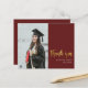 Tarjeta de agradecimiento de caligrafía de oro rojo moderno para graduación de fotos. "Gracias" a tu familia y amigos con esta hermosa tarjeta de agradecimiento. Tenga en cuenta que NO SE incluyen ENVELOPES. Las dimensiones de esta tarjeta son de 4,5" x 5,6" y encajan bien en un sobre A6 de 4,75" x 6,5" si lo tiene. O puede seleccionar una opción de sobre. Todos los textos están preorganizados para que puedas personalizarlos fácil y rápidamente con tus propios detalles.