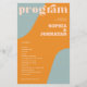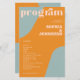 Abstract shapes retro vintage 70s style unique budget affordable groovy wedding program template with bold typography in a trendy modern pastel dusty blue, pale pink and orange boho chic spring summer color palette. +++++++ Please note that all the colors are changeable. ++++++++++++ Suitable for casual informal stylish contemporary weddings.