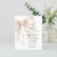 This First Holy Communion invitation features a soft blush beige satin bow made from a pearl rosary, complete with a dangling cross and heart-shaped pearl center detail. The elegant religious design is placed on a clean white background with modern mixed typography, creating a refined and meaningful look for a girl’s communion celebration. Perfect for a Catholic sacrament event, this invitation combines delicate rosary symbolism with graceful script and serif text for a timeless and feminine style. Personalize the wording with your child’s name, date, time, and event details.