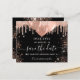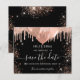 Un fondo negro adornado con un purpurina de imitación de oro rosa, chispas y globos. Personalice y agregue una fecha y un nombre/edad. El texto: Save the Date se escribe con un gran guión de estilo escrito a mano.