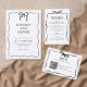 Design feature a simple black and white design with a cute hand drawn wavy border and a small black bow at the top. Using a clean classic font and handwritten calligraphy script. It looks elegant but also a little playful.