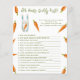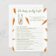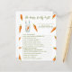 Invitaciones a duchas de bebé neutrales en género. Con el dicho "¡UN PEQUEÑO BUNNY ESTÁ EN CAMINO!", un ilustracion de un conejo acuarela (conejo) con zanahoria en garras y muchas zanahorias a color naranja. Elementos coincidentes disponibles.