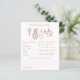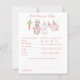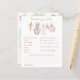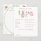 The Predictions for Baby and Baby Well Wishes game features a sweet watercolor clothesline strung across the top, proudly displaying tiny, adorable items, each featuring a cute bunny dressed in pink, with baby prediction questions and a space with advice for the parents to be. The back includes a space for Well Wishes for Baby with a hand painted frame of a crisp pink ribbon pattern accented with a lush light green ribbon wreath, with a darling pink bow holding a bunch of fresh carrots all rendered in a soft watercolor style. Choose this fun activity which then becomes a special keepsake, every detail is crafted to be saved, tucked away in a baby book, and treasured for you and baby to remember the love of family and friends as he grows.