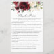 Celebra tu ducha de bebé con este divertido juego de pases el premio! Pídele a sus invitados que se sienten alrededor de la habitación y elijan a alguien para que lea las rimas y pase el premio en consecuencia. ¡El invitado que lleva el premio al final es declarado ganador! Personaliza este juego con tus propias rimas. Simplemente pulse el botón personalizar it para reorganizar y formatear el estilo y la ubicación del texto. Diseñado para coincidir con nuestra colección floral de Borgoña rústica. ¡Artículos coincidentes disponibles en la tienda! (c) El estudio Happy Cat Studio.