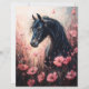 Un majestuoso caballo rodeado de delicados flores silvestres rosas, que capturan la gracia y la belleza de la naturaleza en un ambiente suave y romántico.