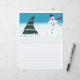 Pintar un árbol de Navidad y un muñeco de nieve bailando en la nieve es el gran diseño de membrete alineado con personalizados.