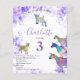 Una colección de ilustraciones de cabras con salpicaduras de acuarela coloridas en rosa, púrpura, azul, naranja, amarillo y aqua vibrantes. Una linda invitación de cumpleaños número 3 para una fiesta de animales de granja con cabritos y cabras paradas sobre cabras. Esta divertida invitación de fiesta económica es fácil de personalizar para crear una invitación de fiesta única adecuada para niños y adultos amantes de las cabras. Ilustraciones originales psicodélicas de cabras con tema púrpura coloridas de la artista Catherine Sweetman.