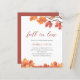 Personalizable invitaciones modernas de papel de ducha de novias, con una rama de un árbol en otoño y hojas de otoño en tonos naranja, óxido, amarillo y marrón sobre un fondo blanco limpio. Esta es una invitación en papel asequible. Puede visitar nuestra tienda Peony Designs para comprar esta invitación en tarjeta o digital.