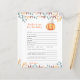 "Hay una calabaza en camino. ¡Celebren con la temática de la calabaza de este personalizado para el fiesta de la ducha de bebé! Acuarela linda calabaza kawaii personalizado con gorra de otoño (gorra) y hojas de otoño. En el reverso de la tarjeta están las hojas de otoño.