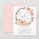 Una invitación para una fiesta de cumpleaños de un chica amigable con el presupuesto de un bonito con "¡nuestra calabaza dulce se está volviendo una!" escrito en una mezcla de tipografía gris suave moderna y un guión con un latido de corazón, y una guirnalda de calabaza rosa y de coral y acuarelas florales con acentos purpurinas de oro. Personalice su nombre y los detalles de la primera fiesta de cumpleaños en una simple tipografía gris. Este papel semibrillante de presupuesto es similar en peso al papel fotográfico. También está disponible una versión más grande del stock de tarjetas 5x7 (envíenos un mensaje para el enlace).