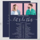 Destacando tus dos fotos especiales. Este elegante calendario de bodas en azul marino y blanco se puede personalizar con la información de tu boda en tipografía blanca moderna y chic. Diseñado por Thisisnotme©