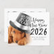Un precio económico más bajo 4,5 x 5,6" alternativo en un stock de 110 libras, similar en grosor a una postal. Hay UNA por hoja. Guión de superposición de fotos del Mascota de presupuesto Feliz Calendario de Año Nuevo 2026. Un guión juego para Feliz Año Nuevo 2026 y el resto del texto es fácil de personalizar. Reemplace la foto de ejemplo con su propia linda imagen de su mascota. Una capa superpuesta de gradiente está encima de la foto, por lo que se desvanece a medida que llega al centro con el texto parcialmente sobrepuesto sobre la parte superior. En la parte posterior hay un práctico calendario 2026 para los destinatarios.