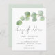 Una alternativa de valor por dinero BUDGET en un tamaño menor de 4,5 x 5,6" de peso semibrillante de 110 libras, que es de espesor similar al de una postal (sin embargo, no es adecuado para usar como postal). POR FAVOR, TENGA EN CUENTA QUE HAY UNA invitación por hoja. Cambio de dirección del guión del eucalipto del presupuesto Estilo minimalista para que todos sepan su nueva dirección con una tipografía elegante para el encabezado y personalizar fácilmente el resto del texto con sus detalles. Una rama de las hojas de eucaliptos acuáticas se encuentra en la parte superior derecha.