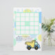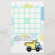Tarjeta de bingo para ducha de bebé para complementar nuestros camiones de construcción invitación a la ducha de bebé con puntos de confeti azules, verdes y amarillos suaves y camión de basura.