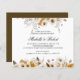 BODA DE BAJO COSTO REHEARSAL CENA *** IMPRESIONADO EN PAPEL ASEQUIBLE DE PESO MÁS LIGERO *** Con un borde de moda floral en sutil paleta de flores amarillas de mimosa, flor blanca de camomila, follaje gris y marrón que rodea sus nombres y los detalles de su fiesta en elegante combinación de letra cursiva y mayúscula, esta cena impresionante pero barata. es perfecto para celebración formal, o boda elegante. Tarjeta inversa a un color marrón chocolate coincidente