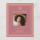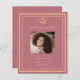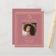 Un fondo dorado subió, decorado con un marco dorado, y un falso gorro de graduación de oro. Personalice y agregue un nombre de foto y detalles. 1 hoja = 1 borde impreso de invitación