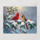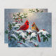 Lámina Cardenales rojos y Holly en la nieve
