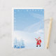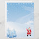 Use este papel de carta de Navidades para crear su carta anual de Navidades familiares o Santa. Cuenta con Santa Claus ondeando desde un fondo azul nevado.