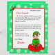 Agregue el nombre de su hijo a esta carta personalizada de Santa. Corte elf sentado en una bolsa de juguetes. Coloriendo la página de atrás.