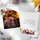 Trae el calor de la temporada de otoño a su día especial con nuestra colección de invitaciones para marcos dorados de arcos de Borgoña. Estas impresionantes invitaciones cuentan con un rico fondo burdeos con brillantes acentos dorados. Son la manera perfecta de mostrar una foto personalizada, haciendo de sus invitaciones de boda un placer inolvidable.