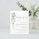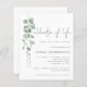 Una alternativa de valor por dinero BUDGET en un tamaño menor de 4,5 x 5,6" de peso semibrillante de 110 libras, que es de espesor similar al de una postal (sin embargo, no es adecuado para usar como postal). POR FAVOR, TENGA EN CUENTA QUE HAY UNA invitación por hoja. Celebración Presupuestaria De La Vida Eucalyptus Invitación Al Almuerzo. Estilo botánico moderno, con un follaje acuático a lo largo de la izquierda. Un guión escrito a mano para Celebración de la Vida y el resto del texto que puedes personalizar fácilmente.