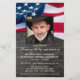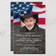 Celebración De Invitación A La Vida En El Funeral Estadounidense Flag Memorial De Los Estados Unidos. Esta celebración patriótica de la invitación a la vida incluye una bandera de los Estados Unidos de América en un fondo de madera oscura. Personalice esta celebración de la invitación a la vida en la bandera estadounidense con la foto de sus seres queridos, nombre / rango y fechas, ubicación del evento y cualquier información adicional en la parte de atrás. Esta invitación a un funeral con la bandera estadounidense será un tesoro. Perfecto para un funeral militar, y servicio de memoria de veteranos o celebración militar de la vida. En Memoria Amante Monumento Militar Bandera Americana. DERECHOS RESERVADOS © 2020 Judy Burrows, Black Dog Art - Todos los derechos reservados. Celebración Presupuestaria De La Vida De Veteranos Militares Invitados