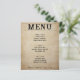 Retro, vintage de los años 1800 buscaba un menú boda de estilo poster con un fondo angustiado. Personalízalo con los detalles de tu evento.