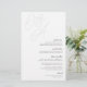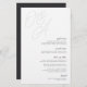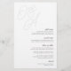 Una hermosa tarjeta de menú boda basada en tipografía con sus iniciales en letras de guiones sobredimensionadas en la parte superior, en tono de tonos para un efecto de marca de agua. Personalice los elementos de menú que se encuentran debajo, alineados a la derecha. Nuestra colorida ceniza hace una declaración clásica con un negro suave y apenas hay letras grises en un fondo blanco crujiente.