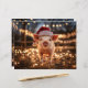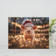 Papel de cuadernillo con un adorable cerdo vestido con un sombrero de Santa y rodeado de Navidades con luces intermitentes.