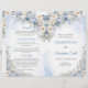 Boho Elegant Dusty Blue and Ivory Flowers Ceremony boda programa plegado Este impresionante diseño floral de color azul boho de moda presenta una hidrato azul polvoriento color agua pintada a mano hidrato azul turbio flores azules claras y rosas crema, flores blancas y un moderno y moderno estilo de escritura caligrafía. Т su irresistible sinfonía colorida está elegantemente ambientada sobre un polvoriento fondo de color azul. Delicadas flores de invierno azules de marfil y polvos envuelven elegantemente el texto en la parte central del diseño como un elegante abrazo y le da un toque sofisticado a todo el diseño rústico. Sí, sus invitados estarán realmente fascinados - envíenles esta invitación realmente impresionante y seguramente su celebración Fiesta será recordada por mucho tiempo. En este exquisito diseño hemos preparado todos los elementos necesarios para su Fiesta de eventos de boho - como juegos, posters de bienvenida, carteles de mesa y mucho más, para que pueda obtener un conjunto completo de este excepcional minimalista diseño bohemio floral con una polvorienta hortensias azules, flores azules en polvo y azul hielo mezclando rosas blancas. Contáctame para obtener elementos coincidentes o para personalización, Rosas de Rubor © ses ©