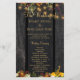 Hermoso naranja oxidado y oscuro otoño borgoñoso flor de caída y bordes de calabaza con cuerdas de luces de centelleo doradas sobre un boda de fondo de madera marrón oscuro modelo de programa de ceremonias. ++++++++++ + Personalízalo con tus detalles! ++++++++++ Adecuado para moda rústica vintage jardín de verano otoño otoño otoño otoño otoño patio al aire libre o bodas de la casa de campo.