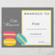 Lámina Certificado de clase para niños de macaron lindo
