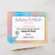 Lámina Certificado de Elefante de Cumpleaños con un Montó
