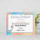 Los cumpleaños son un hito anual que esperamos con ansias. ¡Comienza esta celebración monumental con nuestro diseño de Certificado de Cumpleaños con Elefante y Globos de Dibujo en Pastel! ¡Personalízalo con los detalles de tu hijo!