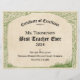 Lámina Certificado de Excelencia al Mejor Profesor del Mu