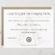 Elegante certificado de culminación para el curso de música saxofonista con ilustracion saxofón. Texto y logotipo a personalizar. Colores principales: dorado beige y gris.