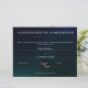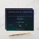 Moderno efecto moiré masculino y elegante certificado de terminación. Colores: negro, azul marino, verde azulado. Por favor, asegúrese de escribir con una pluma de color blanco o plateado si escribe a mano.