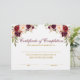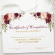 Profesional, Personalizable, Certificado de Finalización. Ideal para clases, cursos de capacitación, escuelas, cursos de negocios y más. Personalice el texto con su personalizado. Elegante acuarela Borgoña Marsala Floral con rosas de Borgoña, rosas rosas rosas y vegetación botánica. Guión dorado.