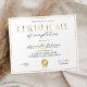 Certificado de Finalización Elegante en blanco y dorado con su logotipo personalizado, perfecto para certificado de finalización para cualquier tipo de curso como estética, belleza, pestañas, cursos de peluquería y más. También puede utilizar este elegante diseño de diploma con efecto dorado falso para cualquier tipo de acreditación. Puede editar todo el texto *excepto la palabra certificado*, agregar su logotipo y crear premios profesionales para su negocio u organización.
