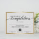 Lámina Certificado de finalización Premio de marco dorado