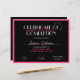 Certificado de Finalización de Curso de Belleza en rosa negro y caliente, perfecto para certificados de terminación para lash, cejas u otros cursos de belleza. También puede utilizar este moderno diseño de certificados para cualquier tipo de diploma profesional. Este premio de curso de estética rosa presenta un diseño moderno de escritura que crea un hermoso diseño de certificado de logro.
