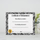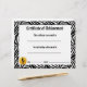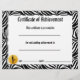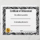 Este premio de danza cuenta con un borde de estampado de cebra divertido y de cadera y ofrece espacio para escribir un logro sobresaliente personalizado a un individuo con su firma. El certificado se completa con una silueta de una bailarina haciendo un movimiento moderno de danza dentro de un emblema de oro en la esquina inferior izquierda - perfecto para presentarle a un bailarín moderno o lírico en un recital de baile o un banquete de premios