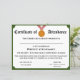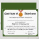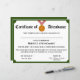 El diseño presenta un guarnecido rojo con la imagen de una cinta galardonada con una medalla de oro en el centro superior. El título se muestra en el tipo de letra tradicional de un certificado. Todo el texto es personalizable. El color posterior coincide con el del guarnecido delantero. Los colores disponibles son rojo, dorado, verde y azul.