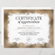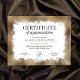 Elegante Certificado de Apreciación, con un borde de efecto purpurina dorado, espacio para su logo y texto de personalizable completo. Perfecto para el certificado de apreciación de cualquier tipo de logro profesional. Puede utilizar este diseño de diploma para la concesión de diplomas a empleados o diploma de participación, simplemente edite el texto para adaptarlo a sus necesidades. Esta plantilla de certificado de finalización es muy versátil para adaptarse a cualquier organización o empresa.