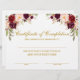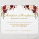 Profesional, Personalizable, Certificado de Finalización. Ideal para clases, cursos de capacitación, escuelas, cursos de negocios y más. Personalice el texto con su personalizado. Elegante acuarela Borgoña Marsala Floral con rosas de Borgoña, rosas rosas rosas y vegetación botánica. Guión dorado.